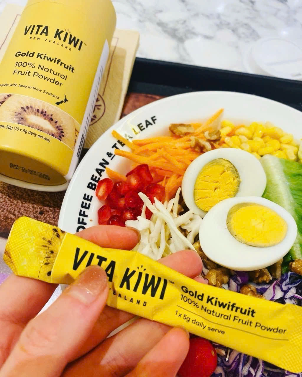 🥝 Chỉ với 1 gói Vita Kiwi, bạn bổ sung dưỡng chất tương đương 1.5–2 trái kiwi vàng tươi -lý tưởng cho chế độ ăn mỗi ngày 1 quả kiwi.